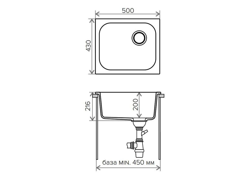 | Минимальный размер тумбы под мойку, мм | 450 |